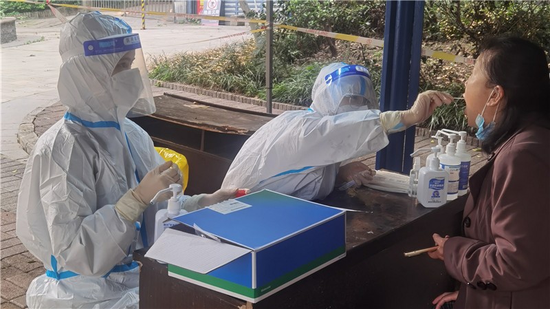 11月以來,重慶疫情形勢愈發(fā)嚴(yán)峻,多個街道、社區(qū)、小區(qū)納入臨時封控,重慶市陸續(xù)開展多輪全員核酸。疫情當(dāng)前,許多醫(yī)護(hù)人員被納入隔離管理,便民核酸檢測點面臨無法正常啟用的難題。11月6日,重慶華西牙科醫(yī)院接到重慶市衛(wèi)生主管部門關(guān)于支援疫情防控工作的通知,立即安排全院護(hù)士輪番上陣,參與到渝北區(qū)渝魯核酸檢測點的采樣工作。護(hù)士們每天早上6:50就到達(dá)核酸檢測點,連續(xù)7個小時一直穿著厚重悶熱的防護(hù)服,為附近居民提供核酸采樣服務(wù)。目前,重慶華西牙科累計派出21人次,完成15000余人次的核酸檢測。