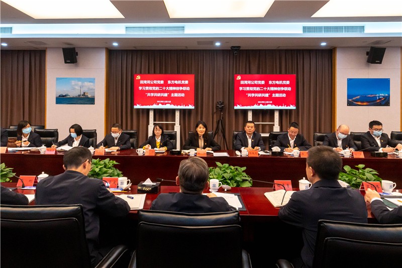 11月21日,田灣河公司黨委與東方電機(jī)黨委在德陽(yáng)東方電機(jī)廠聯(lián)合開(kāi)展學(xué)習(xí)貫徹黨的二十大精神“共學(xué)共研共建”主題活動(dòng)。東方電機(jī)有限公司黨委書(shū)記、董事長(zhǎng)王軍,黨委副書(shū)記、總經(jīng)理鄢志勇,黨委副書(shū)記、工會(huì)主席徐學(xué)文,副總經(jīng)理、總工程師梁權(quán)偉;公司黨委書(shū)記、董事長(zhǎng)李紅,黨委副書(shū)記、總經(jīng)理?xiàng)畛?,黨委副書(shū)記、工會(huì)主席楊坤,副總經(jīng)理伍超。公司與東方電機(jī)相關(guān)部門人員參加活動(dòng)。