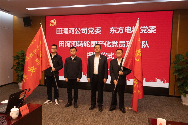 到達(dá)活動(dòng)現(xiàn)場(chǎng)后,公司一行首先參觀了東方電機(jī)重跨廠房、東電印記文化墻、數(shù)字化車間、水力試驗(yàn)臺(tái),了解了東方電機(jī)的基礎(chǔ)生產(chǎn)情況和轉(zhuǎn)輪國(guó)產(chǎn)化科研、生產(chǎn)進(jìn)度。隨后,雙方進(jìn)行了座談交流。座談中,雙方黨委委員共同領(lǐng)學(xué)了習(xí)近平總書(shū)記《高舉中國(guó)特色社會(huì)主義偉大旗幟為全面建設(shè)社會(huì)主義現(xiàn)代會(huì)國(guó)家而團(tuán)結(jié)奮斗——在中國(guó)共產(chǎn)黨第二十次全國(guó)代表大會(huì)上的報(bào)告》;雙方黨委、基層黨組織代表分享了黨的二十大精神學(xué)習(xí)心得;對(duì)“轉(zhuǎn)輪國(guó)產(chǎn)化”項(xiàng)目進(jìn)展情況及下階段工作的開(kāi)展情況進(jìn)行了交流,并舉行了“田灣河轉(zhuǎn)輪國(guó)產(chǎn)化黨員攻關(guān)隊(duì)”成立授旗儀式。