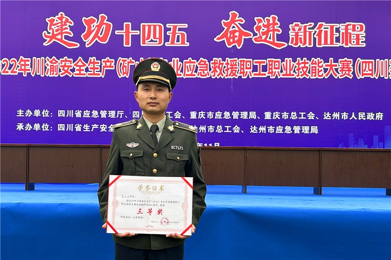 11月23日至24日,川渝安全生產(礦山)專業(yè)應急救援職工職業(yè)技能大賽在四川省達州市舉行,嘉陽集團礦山救護隊參賽隊員賀文冰榮獲武裝越野項目三等獎。