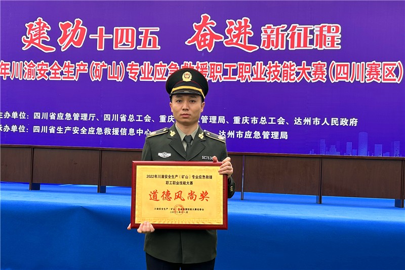 嘉陽集團礦山救護隊前期圍繞理論知識和實際操作考核開展了理論、體能強化訓練,經過激烈角逐和層層選拔,賀文冰、阮旭波兩名指戰(zhàn)員代表公司參賽。此次技能大賽主要突出參賽隊伍團隊協(xié)作、服從意識和參與災害救援的專業(yè)處置能力,既有個人項目,又有團體項目,所有科目貼近實戰(zhàn),補短板強弱項,突出實用。在全省16支隊伍64名礦山專業(yè)救援人員中,賀文冰榮獲武裝越野項目三等獎,團體獲得道德風尚獎。