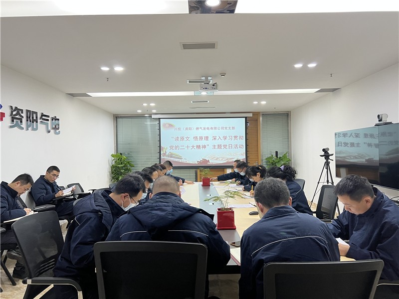 11月30日,資陽(yáng)氣電黨支部開展主題黨日活動(dòng),誦讀黨的二十大報(bào)告,讀原文,悟原理,深入領(lǐng)會(huì)黨的二十大精神精髓實(shí)質(zhì)。公司黨員、發(fā)展對(duì)象、入黨積極分子共17人參加活動(dòng)。