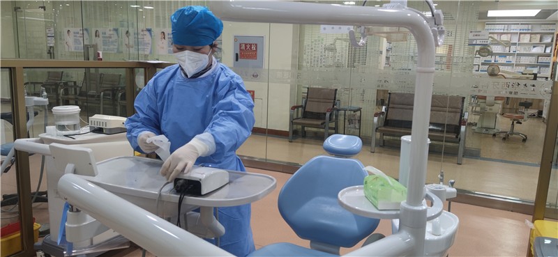 12月4日,醫(yī)院各部門員工分批次返崗,進行復診前的準備工作。全體員工在返崗前進行核酸檢測,保證在崗期間持有72小時核酸陰性報告。各臨床科室嚴格進行診療環(huán)境管理,高標準執(zhí)行《口腔診療器械消毒滅菌技術操作規(guī)范》,加強診療環(huán)境(牙椅、臺面、地面等)的通風和清潔消毒。