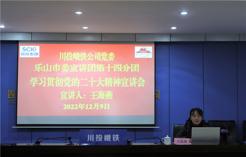 為深入學(xué)習(xí)宣傳貫徹黨的二十大精神,12月9日,川投峨鐵公司邀請樂山市委宣講團十四分團專家王海燕到公司宣講黨的二十大精神。公司領(lǐng)導(dǎo)班子成員、中層助理及以上管理人員、黨員代表、入黨積極分子代表、職工代表共79人參加。