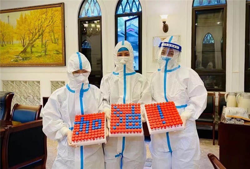 在日常診療工作中,他們是海外歸國學者、碩博研究生、優(yōu)秀青年醫(yī)護,他們手中拿的是最精密的牙科器械,用的是復(fù)雜尖端的醫(yī)療設(shè)備。而在抗擊疫情的戰(zhàn)場中,他們只有一個身份——逆行者。他們拿起手中的拭子,以最耐心的態(tài)度、嫻熟的技術(shù)、專業(yè)的操作服務(wù)每一位轄區(qū)居民。盡管堅守工作崗位數(shù)個小時,雙手被防護服捂得發(fā)皺發(fā)白,雙眼被防護面罩的霧氣蒙蔽,醫(yī)護人員們?nèi)院翢o怨言,用責任心和愛心為居民撐起一把“防護傘”。