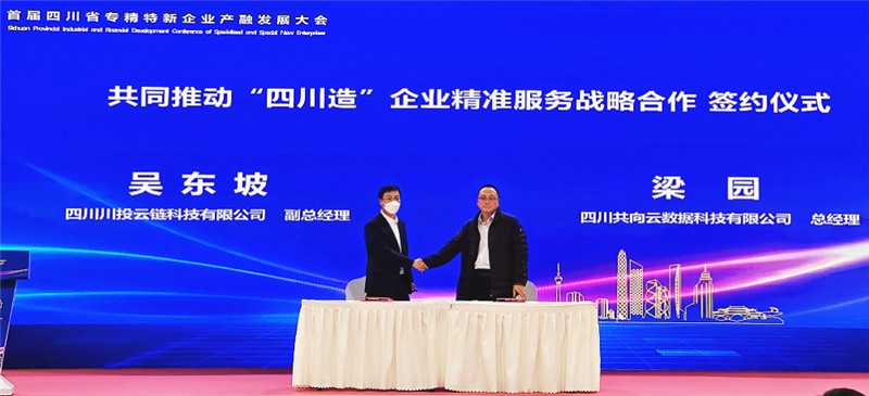 會上,四川川投云鏈科技有限公司“撮合拍供應(yīng)鏈金融智慧服務(wù)平臺”,與四川共向云數(shù)據(jù)科技有限公司“四川省數(shù)字貿(mào)易平臺”,就雙方平臺強(qiáng)強(qiáng)聯(lián)合共同推動“四川造”企業(yè)精準(zhǔn)服務(wù)進(jìn)行戰(zhàn)略合作簽約。