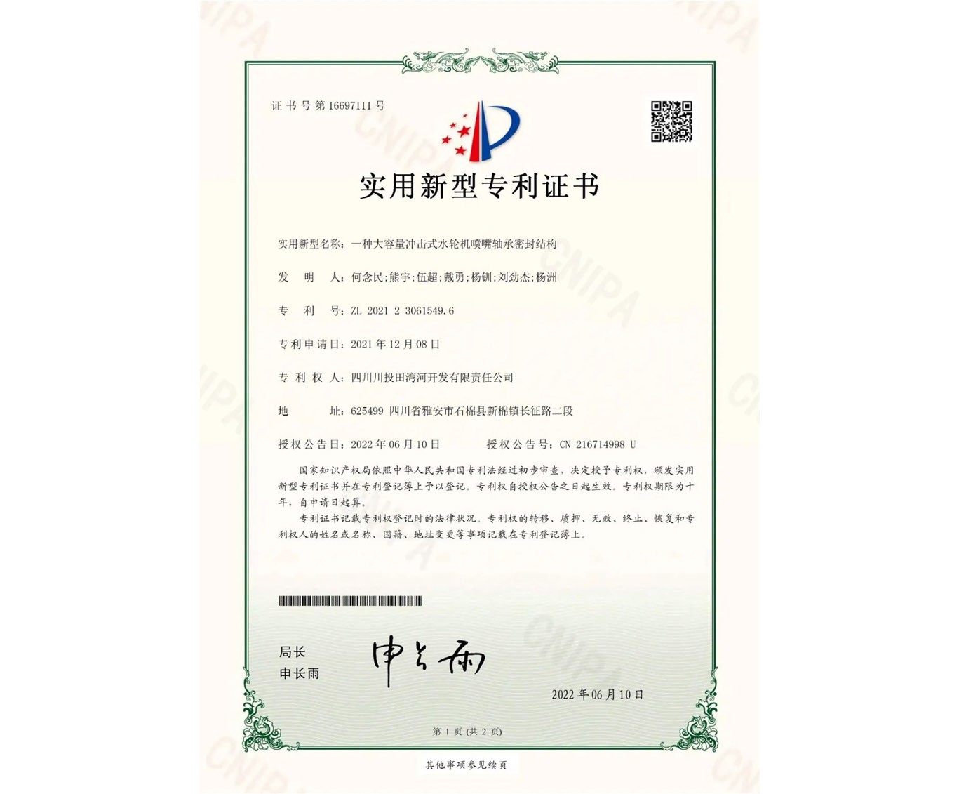 2022年,公司科技創(chuàng)新再添新成果,“一種滴水裝置”“一種大容量沖擊式水輪機(jī)噴嘴軸承密封結(jié)構(gòu)”2項研究成果取得實用新型專利證書,“大型水斗式轉(zhuǎn)輪翻轉(zhuǎn)吊具的研究及應(yīng)用”論文被《2022中國水電青年科技論壇》錄用,“某深厚覆蓋層上土工膜防滲堆石壩滲流特性影響因素分析”論文被《水電與抽水蓄能》刊出?!案咚^六噴六折沖擊式水輪發(fā)電機(jī)組AGC調(diào)節(jié)性能研究”“高水頭沖擊式水輪機(jī)六噴六折調(diào)速器控制技術(shù)改進(jìn)研究”兩項科技成果同時獲得四川省電力行業(yè)協(xié)會2021年度研究課題成果獎,“水電企業(yè)‘水電+旅游’產(chǎn)業(yè)升級實踐”獲得四川省電力行業(yè)協(xié)會2021年度管理創(chuàng)新成果獎。
