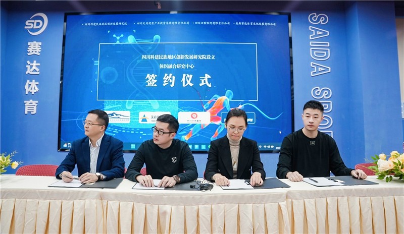 為深入貫徹落實《“健康中國2030”規(guī)劃綱要》,推動體育和醫(yī)學多維度、深層次結合,實現全民體育、全民健身的目標。1月7日,由四川口腔醫(yī)院、四川科建民族地區(qū)創(chuàng)新發(fā)展研究院、四川天府健康產業(yè)投資集團有限責任公司、成都賽達體育文化有限公司共同發(fā)起設立的“體醫(yī)融合研究中心”合作簽約儀式在成都賽達乒乓球俱樂部舉行。四川口腔醫(yī)院常務副院長向彩榮,四川科建民族地區(qū)創(chuàng)新發(fā)展研究院院長云智,四川天府健康產業(yè)投資集團有限責任公司總經理張一帥,成都賽達體育文化有限公司執(zhí)行董事長李冠銑出席簽約儀式。