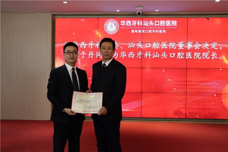會上,鐘至誠代表汕頭口腔醫(yī)院,聘任汕頭市醫(yī)學會主任委員、原汕頭大學醫(yī)學院第一附屬醫(yī)院口腔醫(yī)療中心主任于丹教授為汕頭口腔醫(yī)院院長,并頒發(fā)聘書。鐘至誠指出,汕頭口腔醫(yī)院全體員工要在于丹教授的帶領下,齊心協(xié)力,團結奮進,不斷提升醫(yī)療質量和醫(yī)療水平,更好地服務廣大群眾。于丹教授作表態(tài)發(fā)言,他表示將會充分發(fā)揮自身優(yōu)勢,不斷推進醫(yī)療團隊建設、人才培養(yǎng)和醫(yī)療質量管控等工作。