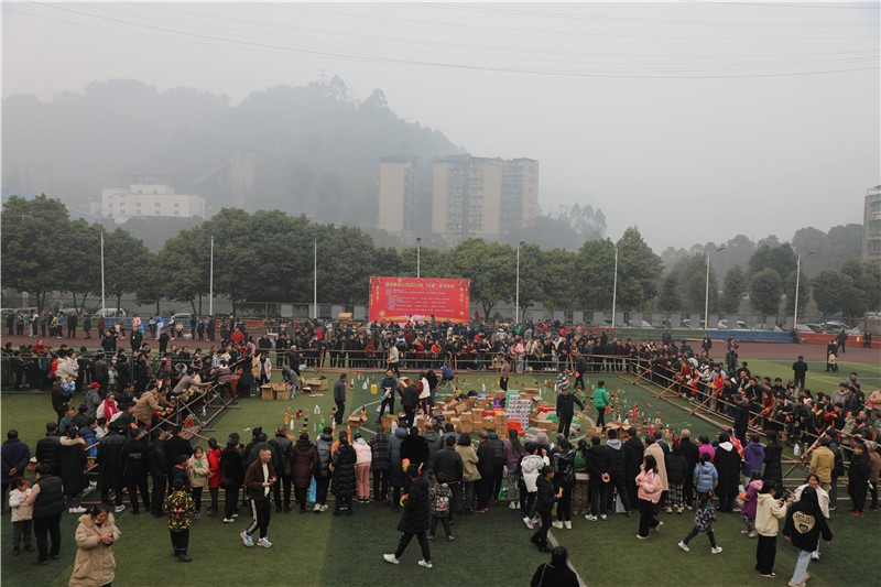 “實(shí)物套圈”與“貳柒拾”爭(zhēng)霸在官斗山足球場(chǎng)同步進(jìn)行,職工們攜妻帶子來(lái)到礦區(qū)“碰運(yùn)氣”。長(zhǎng)方形的活動(dòng)現(xiàn)場(chǎng)圍了個(gè)里三層外三層,等待“出擊”的家屬們,在彩圈售賣處排起的長(zhǎng)龍繞了兩道彎。凝神聚氣、預(yù)估距離,屏住呼吸、瞄準(zhǔn)目標(biāo),轉(zhuǎn)動(dòng)手腕、用力一揮,天空中快速閃過(guò)一道道美麗的拋物線。有套中目標(biāo)豐收喜悅的歡呼,有擦肩而過(guò)的嘆息與加油。套上三兩瓶好酒,回家過(guò)個(gè)熱鬧年,無(wú)論老少,眼里都是希望。