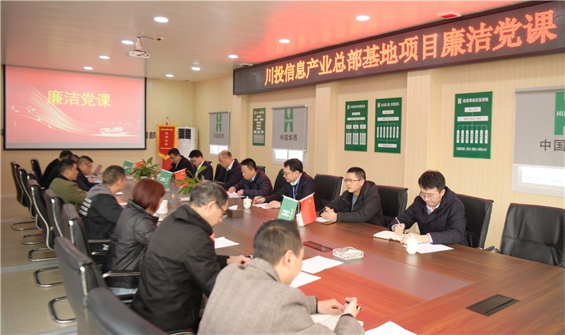 為進(jìn)一步發(fā)揮川投信息產(chǎn)業(yè)總部基地項目“結(jié)對聯(lián)建”黨建制度優(yōu)勢,爭創(chuàng)黨建特色項目、廉潔模范項目、聯(lián)建精品項目,2月17日,川投信產(chǎn)黨委書記、董事長率隊赴總部基地項目,以“深入學(xué)習(xí)貫徹黨的二十大精神 擂響爭先領(lǐng)跑戰(zhàn)鼓 筑牢廉政風(fēng)險堤壩”為題作廉潔黨課。華西十二公司、川投信產(chǎn)、川房公司有關(guān)負(fù)責(zé)同志,總部基地項目部全體黨員干部職工參加學(xué)習(xí)。