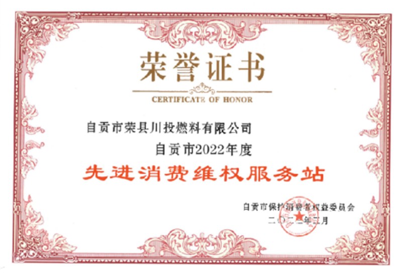 2023年3月,川投燃電集團(tuán)所屬榮縣川燃公司榮獲“自貢市2022年度先進(jìn)消費(fèi)維權(quán)服務(wù)站”稱(chēng)號(hào),也是榮縣唯一獲此殊榮的單位。