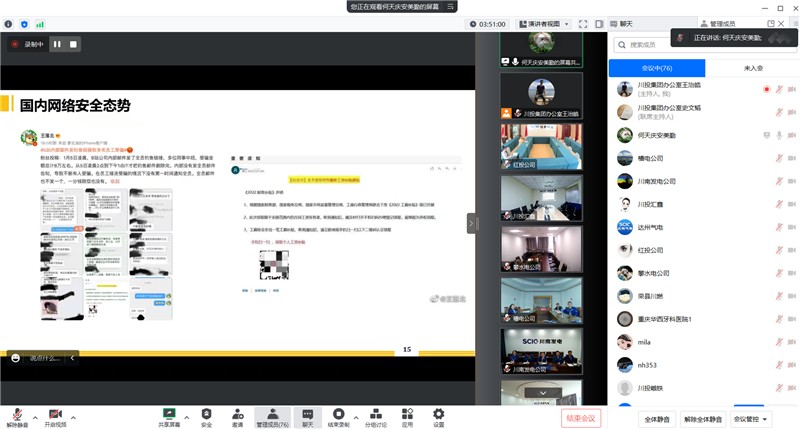 為貫徹落實(shí)網(wǎng)絡(luò)安全和信息化工作有關(guān)要求,進(jìn)一步提升廣大員工的網(wǎng)絡(luò)與信息安全意識(shí),結(jié)合4?15全民國(guó)家安全教育日相關(guān)活動(dòng)安排,4月11日下午,川投集團(tuán)辦公室以線上方式組織召開(kāi)了網(wǎng)絡(luò)安全意識(shí)專題培訓(xùn)會(huì)。
