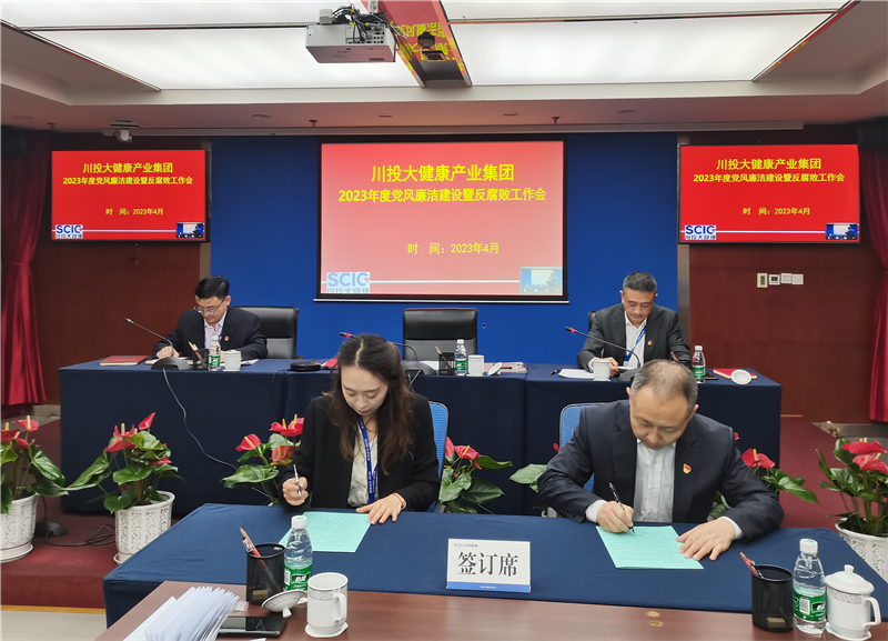 此次會議集中學習了二十屆中央紀委二次全會、十二屆四川省紀委二次全會精神。公司黨委委員、紀委書記姜波部署了2023年度黨風廉潔建設(shè)和反腐敗工作。公司黨委書記、董事長、總經(jīng)理魯洪斌代表川投大健康產(chǎn)業(yè)集團領(lǐng)導(dǎo)班子作了2023年度個人廉潔公開承諾,并與部門簽訂《川投大健康產(chǎn)業(yè)集團2023年度廉潔從業(yè)、廉潔建設(shè)責任書》。