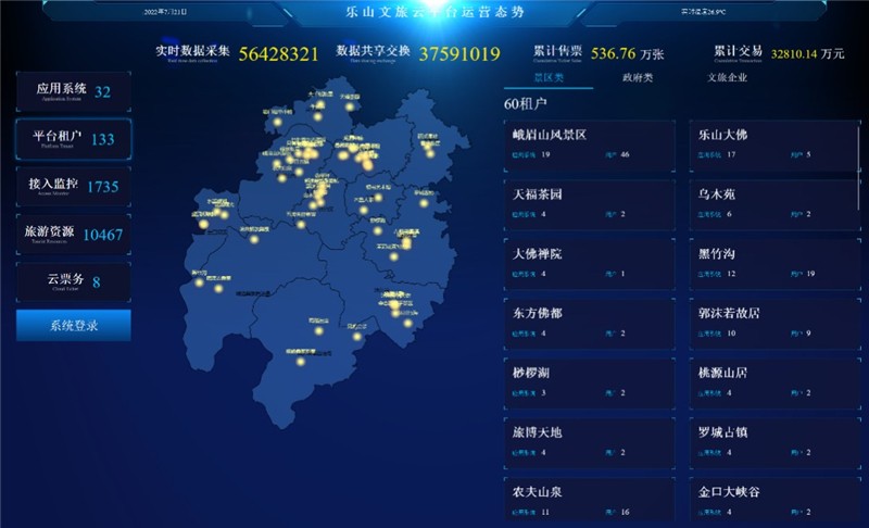 樂山市多個(gè)縣(市、區(qū))通過智勝慧旅“文旅行業(yè)云”搭建了樂山市文旅指揮調(diào)度中心和“一部手機(jī)游樂山”的全域文旅大數(shù)據(jù)公共服務(wù)平臺(tái),實(shí)現(xiàn)對(duì)全域多維度產(chǎn)業(yè)監(jiān)測(cè)和行業(yè)監(jiān)管,同時(shí)在境內(nèi)國家4A級(jí)以上旅游景區(qū)初步實(shí)現(xiàn)市、縣、景區(qū)三級(jí)聯(lián)動(dòng)指揮調(diào)度中心的智慧化管理、數(shù)據(jù)化共享。立足“全域”發(fā)展理念,樂山市通過“文旅行業(yè)云”完成了全市全域智慧文旅各業(yè)務(wù)管理系統(tǒng)間數(shù)據(jù)的共享和交換,并規(guī)范了數(shù)據(jù)資源的共享、交換和管理機(jī)制,實(shí)現(xiàn)異構(gòu)應(yīng)用之間的數(shù)據(jù)動(dòng)態(tài)同步和交換,助力旅游景區(qū)當(dāng)?shù)貐^(qū)域經(jīng)濟(jì)發(fā)展提質(zhì)。該案例于2021年被國家文旅部評(píng)為全國智慧旅游典型案例。