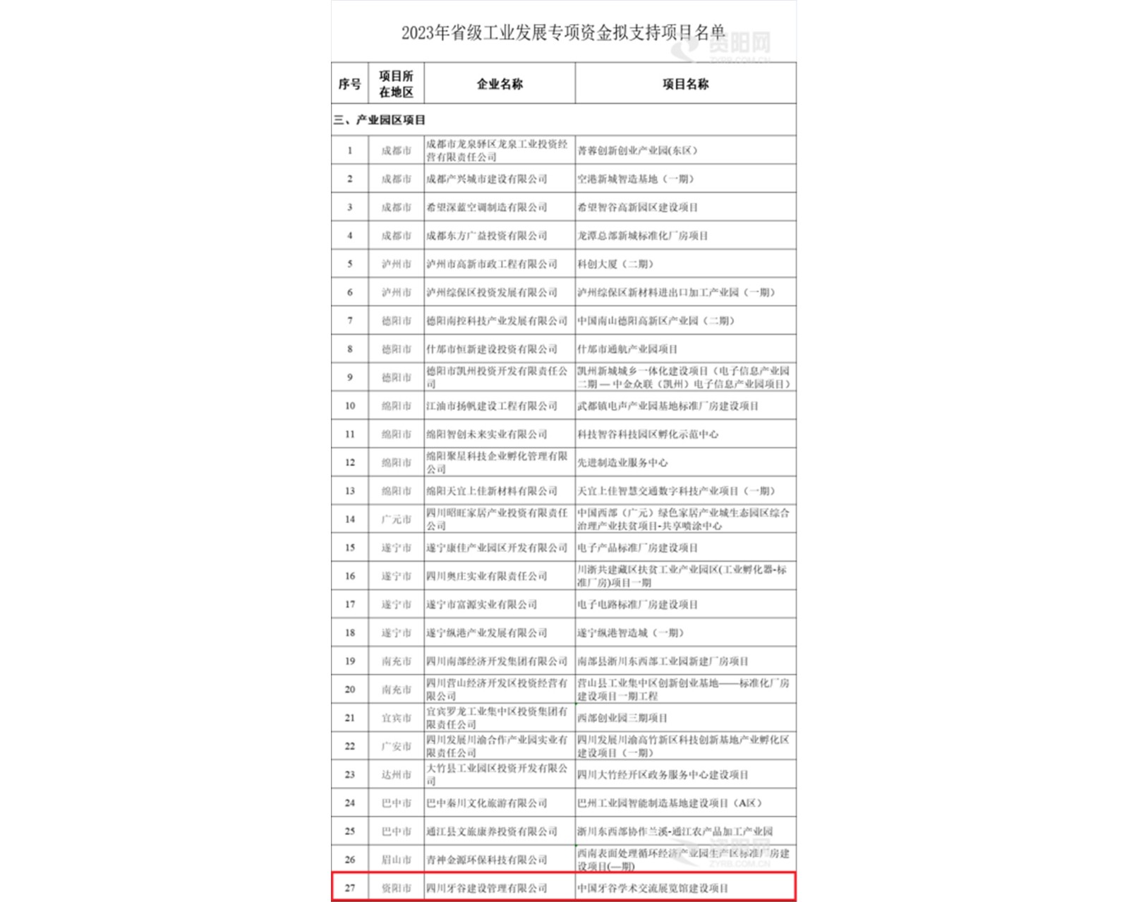 2023年4月,四川省經(jīng)濟(jì)和信息化廳發(fā)布2023年省級(jí)工業(yè)發(fā)展專項(xiàng)資金擬支持項(xiàng)目名單,由牙谷建設(shè)公司負(fù)責(zé)投資建設(shè)的中國牙谷學(xué)術(shù)交流展覽館項(xiàng)目成功入選。