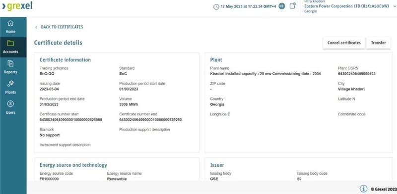 近日,川投集團(tuán)所屬格魯吉亞卡東部電力公司杜里水電站收獲一則喜訊——成功獲得歐州Grexel綠色能源原產(chǎn)地認(rèn)證。這是川投集團(tuán)積極國家“雙碳”行動(dòng)號(hào)召,踐行綠色發(fā)展理念,經(jīng)過積極準(zhǔn)備與主動(dòng)爭取取得的成績。