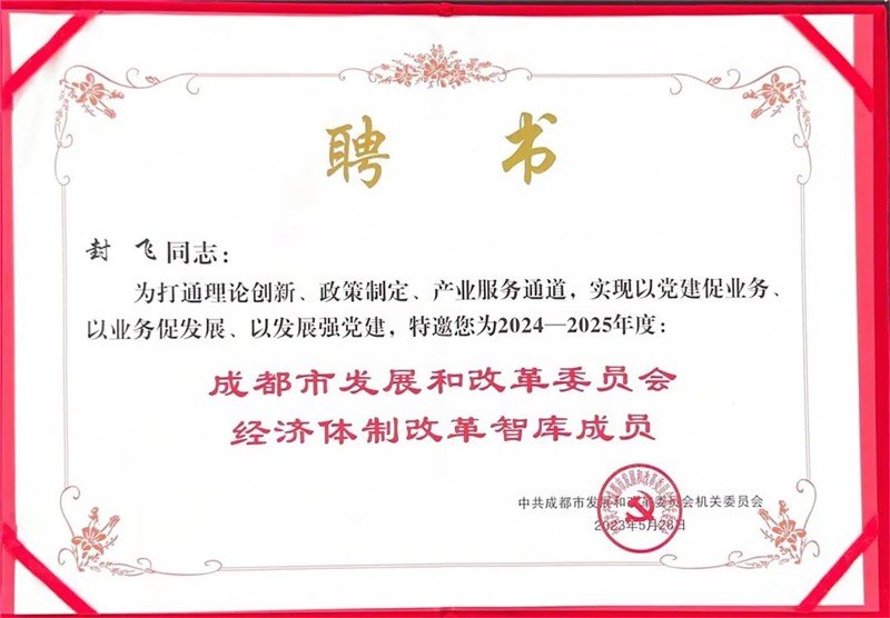 為加快構建成都“5+5+1”現(xiàn)代產業(yè)體系,切實提高經濟體制改革政策及開展政策評估中的精準性和可操作性,成都市發(fā)展和改革委員會特邀了一批有使命感、有擔當精神,洞悉經濟發(fā)展動向、具有較高專業(yè)理論水平的專家學者和具有豐富實踐經驗、緊緊把握市場脈搏的企業(yè)家,共同組建了成都市發(fā)改委經濟體制改革智庫。該智庫是為打通理論創(chuàng)新、政策制定、產業(yè)服務通道,實現(xiàn)以黨建促業(yè)務、以業(yè)務促發(fā)展、以發(fā)展強黨建的重要平臺。會上,川投信產所屬四川川投云鏈科技有限公司總經理封飛受邀參加“上市直通車”啟動儀式,并獲聘為“2024-2025年度成都市發(fā)展和改革委員會經濟體制改革智庫成員”。
