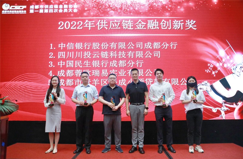 2023年6月2日,成都市供應(yīng)鏈金融協(xié)會一屆四次會員大會隆重召開,川投云鏈榮獲“2022年服務(wù)地方經(jīng)濟(jì)突出貢獻(xiàn)獎”和“2022年供應(yīng)鏈金融創(chuàng)新獎”兩項殊榮。