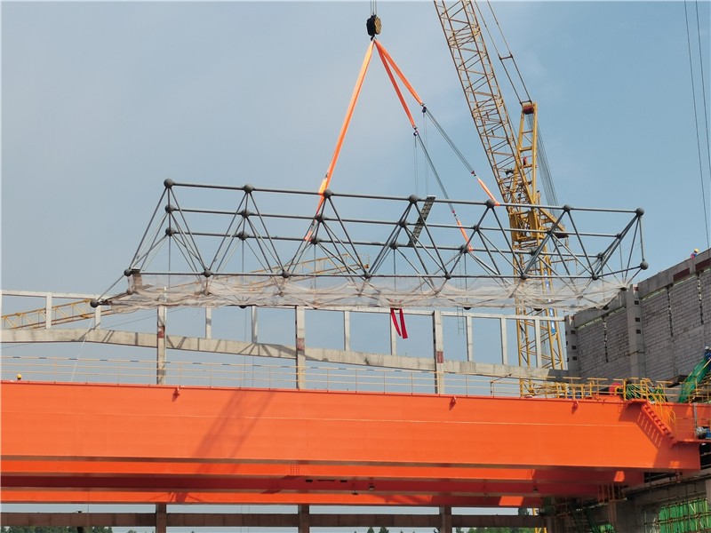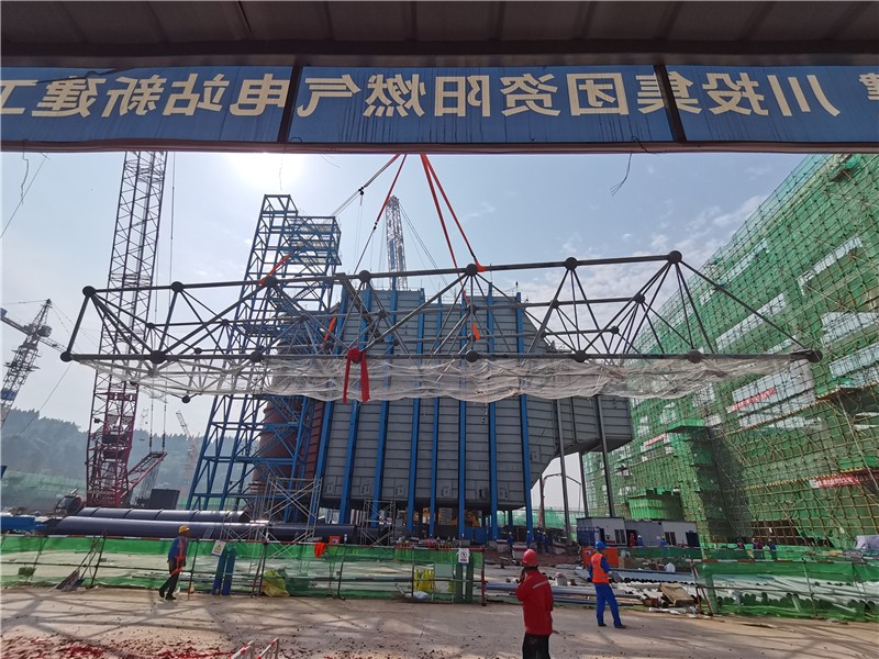 主廠屋面網架吊裝開始標志著資陽燃氣電站主廠房結構進入封閉止水階段,為下步主機安裝奠定了基礎。