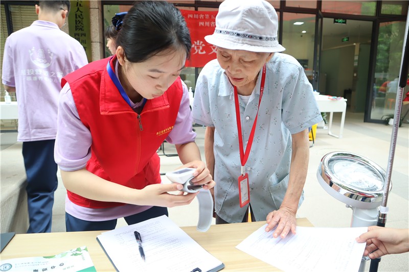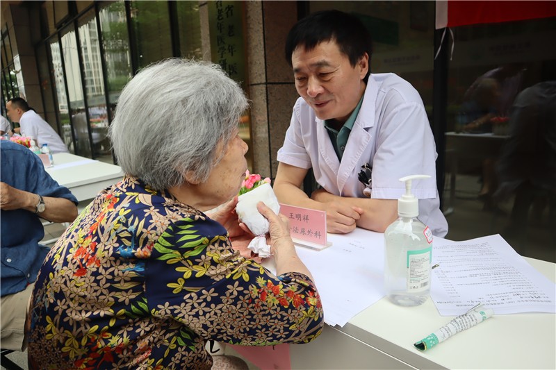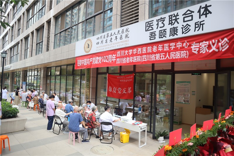 開業(yè)當(dāng)天,為慶祝建黨102周年,弘揚(yáng)偉大建黨精神,四川大學(xué)華西醫(yī)院老年醫(yī)學(xué)中心、四川省老年醫(yī)院的多名專家在現(xiàn)場開展“迎接中國共產(chǎn)黨建黨102周年”主題的健康義診活動(dòng),為長者提供健康診療、老年病評估、中醫(yī)診脈服務(wù),并向長者科普疾病預(yù)防、健康管理及心理衛(wèi)生等方面知識。