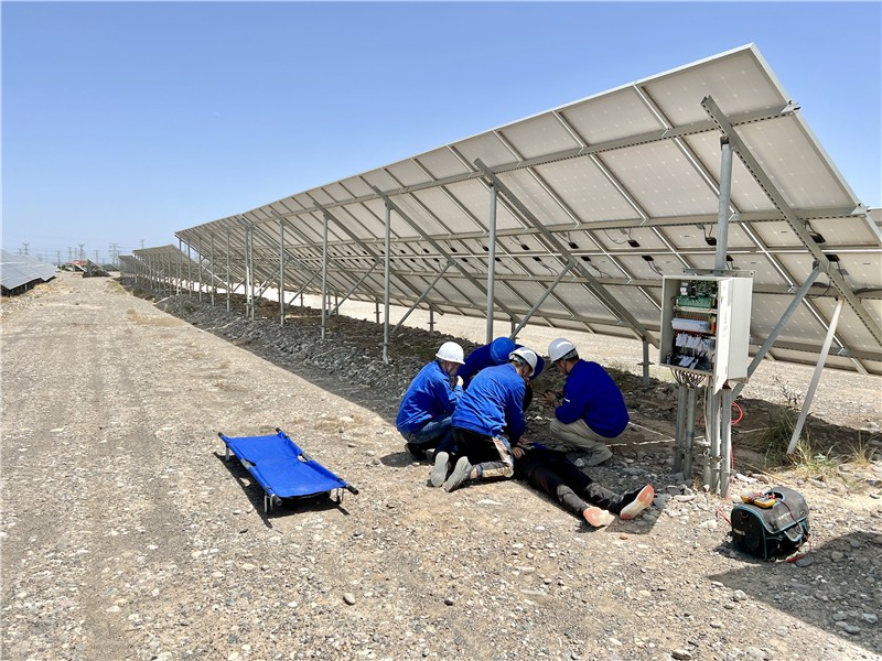 安全生產月期間,公司所屬酒泉光伏電站開展了模擬運維人員在巡檢過程中觸電的應急演練,石嘴山光伏電站開展了模擬突發(fā)火情消防應急演練,顯著提升了電站防災避險和自救互救的能力,筑牢安全生產的防線,確保電站的有序生產。