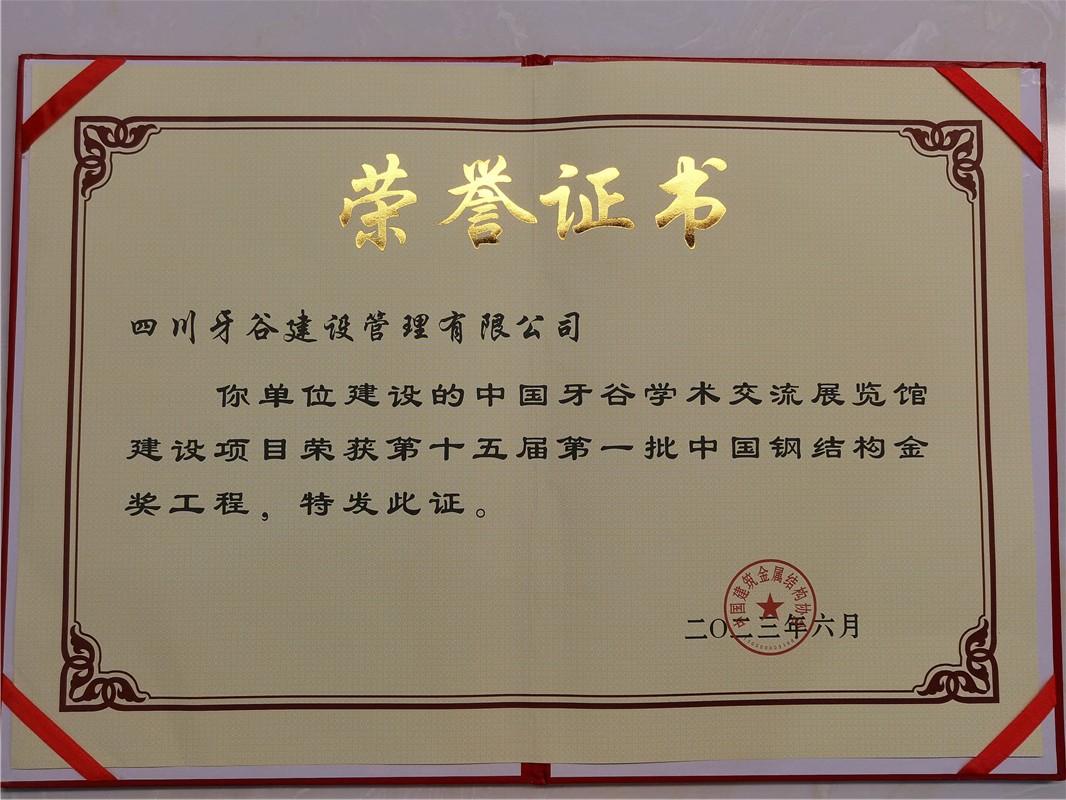 近日,中國建筑金屬結(jié)構(gòu)協(xié)會正式頒發(fā)了中國牙谷學(xué)術(shù)交流展覽館建設(shè)項目榮獲中國鋼結(jié)構(gòu)金獎的獎杯與獎狀,該獎項是中國建筑鋼結(jié)構(gòu)行業(yè)工程質(zhì)量的最高榮譽獎。中國牙谷學(xué)術(shù)交流展覽館建設(shè)項目是公司投資、建設(shè)中國牙谷PPP項目五個項目之一,位于資陽市高新區(qū),總建筑面積約6.27萬平方米。