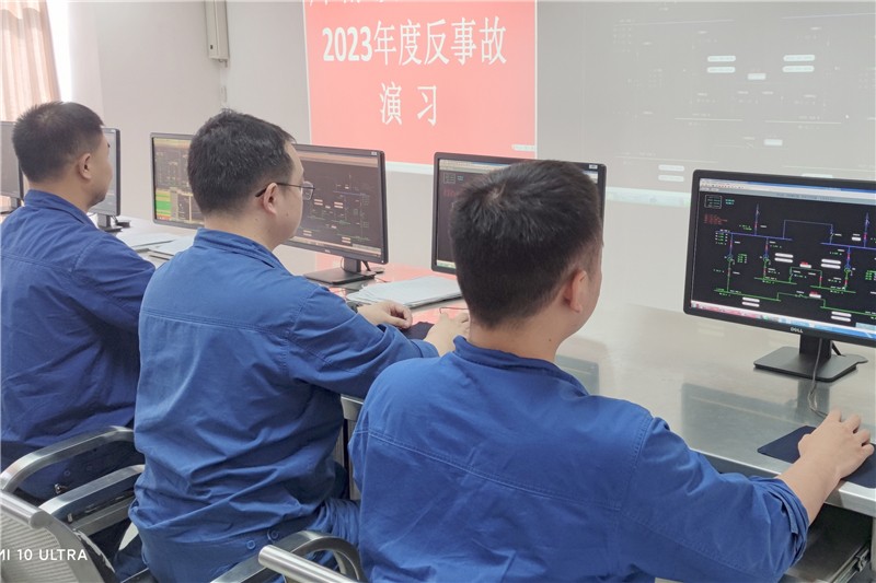 本次演練模擬雙機(jī)滿負(fù)荷運(yùn)行時(shí)脫硫6KV I段因進(jìn)線電源電纜故障引起6KV I段母線失電事故。“匯報(bào)值長(zhǎng),脫硫6KV I段母線失壓,原因尚未查明,6KV I段所屬設(shè)備全部跳閘,需要立即降低1、2號(hào)機(jī)組負(fù)荷配合進(jìn)行事故處理?!彪S著一陣急促的聲音響起,事故演練正式開始。演練開始后,脫硫主值班員立即著手進(jìn)行事故處理,匯報(bào)值長(zhǎng)請(qǐng)求支援,通知檢修及時(shí)到位,安排副值班員重點(diǎn)監(jiān)視好2號(hào)機(jī)脫硫及尿素區(qū)運(yùn)行狀況,令巡檢積極配合檢修人員就地查找原因并做好現(xiàn)場(chǎng)設(shè)備的巡視檢查,在保障1號(hào)機(jī)組安全運(yùn)行的同時(shí),保證2號(hào)機(jī)組環(huán)保參數(shù)達(dá)標(biāo)排放。演練人員各司其職,沉著應(yīng)對(duì),將事故影響控制在最小范圍,避免事故的進(jìn)一步擴(kuò)大。