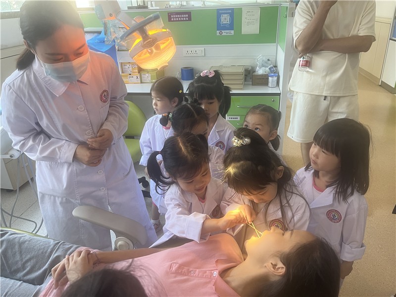 活動(dòng)從生動(dòng)有趣的愛(ài)牙護(hù)齒微課堂開(kāi)始,四川口腔醫(yī)院醫(yī)生運(yùn)用牙齒結(jié)構(gòu)模具為小朋友們講解了齲齒的形成與預(yù)防、口腔結(jié)構(gòu)等保健知識(shí),還為小朋友們講解了口腔的日常維護(hù)、正確的刷牙與飲食方式,幫助大家認(rèn)識(shí)口腔健康的重要性。小朋友們穿上白大褂,變身可愛(ài)的“小小牙醫(yī)”,走進(jìn)兒童口腔診室,在專業(yè)醫(yī)生和護(hù)士的指導(dǎo)下,為家長(zhǎng)和老師們檢查牙齒,體驗(yàn)做一名“小小牙醫(yī)”的樂(lè)趣。