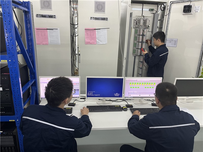 出廠驗收工作于8月20日開始,由資陽氣電、艾默生過程控制有限公司和西南院三方人員組建的驗收小組根據(jù)“分散控制系統(tǒng)(DCS)技術(shù)協(xié)議”以及出廠測試驗收大綱,逐一對DCS系統(tǒng)49面盤柜硬件、軟件功能、各操作員站進行功能測試,重點對DCS每塊卡件進行通道性能測試,控制器、電源、網(wǎng)絡(luò)、交換機等切換試驗,并對邏輯設(shè)計組態(tài)功能進行了詳細測試,最終形成測試驗收報告,報告結(jié)論該系統(tǒng)在實時性、穩(wěn)定性、可靠性等方面表現(xiàn)優(yōu)異,滿足技術(shù)協(xié)議及驗收測試大綱要求。