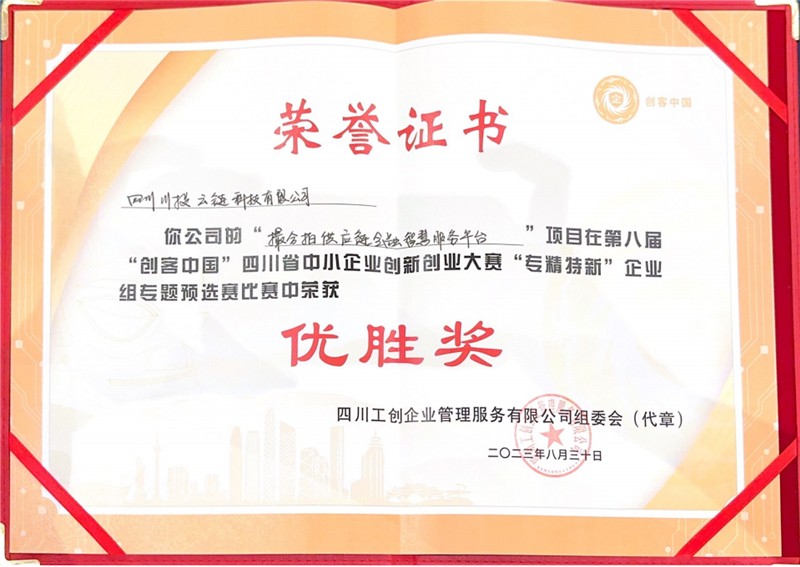 近日,第八屆“創(chuàng)客中國·創(chuàng)業(yè)天府”四川省中小企業(yè)創(chuàng)新創(chuàng)業(yè)大賽“專精特新”企業(yè)組專題預(yù)選賽(四川工創(chuàng)賽區(qū))在成都成功舉行,川投信產(chǎn)所屬川投云鏈憑借“撮合拍供應(yīng)鏈金融智慧服務(wù)平臺”從24個參賽項目中脫穎而出,榮獲優(yōu)勝獎。