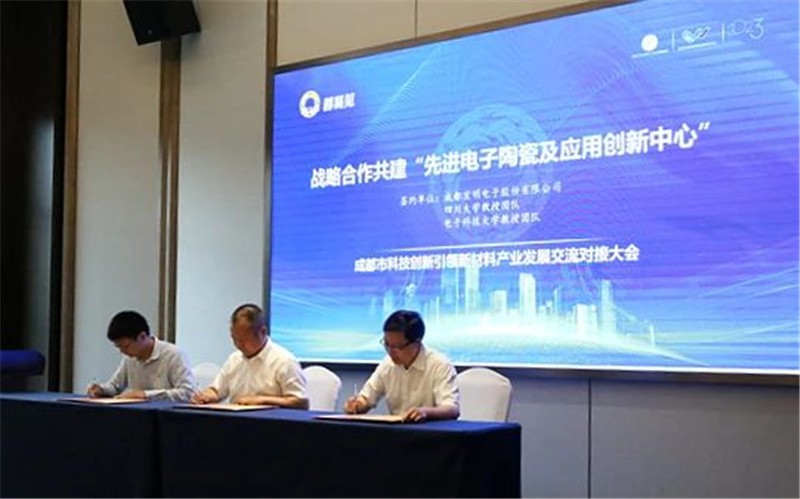 為貫徹落實中共成都市委《關于堅持科技創(chuàng)新引領加快建設現代化產業(yè)體系的決定》精神,本次會議重點圍繞打造“鏈主企業(yè)+公共平臺+產業(yè)基金+領軍人才+中介機構”產業(yè)生態(tài)體系,以“科技引領 產業(yè)創(chuàng)新 知產賦能”為主題開展多場交流合作。會上,宏明電子同四川大學、電子科技大學團隊簽署《戰(zhàn)略合作共建“先進電子陶瓷及應用創(chuàng)新中心”協(xié)議》。成都市經信局新材料產業(yè)處長路遠向宏明電子總經理劉尊述進行首任輪值理事長單位授牌,隨后,劉尊述向四川大學李光憲教授頒授名譽理事長聘書。