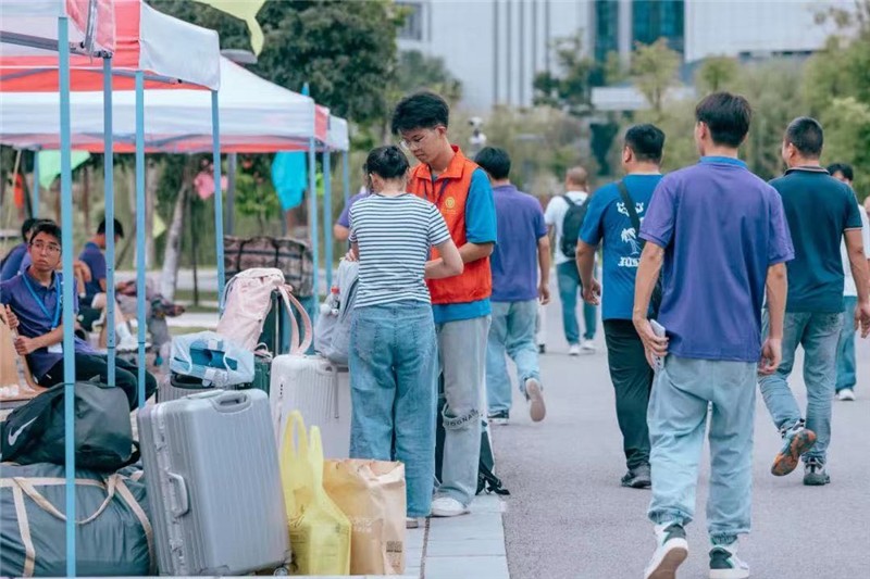 學院根據(jù)新生需求在迎新站點設置師生服務站,由在校學生和專業(yè)教師組成 “專業(yè)知識答疑團”,用樸實的語言、實際的數(shù)據(jù)、專業(yè)的解答,直擊新生和家長關注 “痛點”,提前上好大學新生的“人生規(guī)劃第一課”,加強大家對專業(yè)“認同感”和 “歸屬感”。同時,“數(shù)字迎新系統(tǒng)”實現(xiàn)跨部門的學生信息整合和數(shù)據(jù)集成,讓迎新工作呈現(xiàn)出“數(shù)字化、簡潔化、智能化”的特色,新生報到前已經(jīng)完成線上繳費流程,并提前了解輔導員信息以及宿舍分配情況,到校后即可實現(xiàn)一站式入住,據(jù)統(tǒng)計,新生從入校到入住宿舍整個流程約只需要6到7分鐘。
