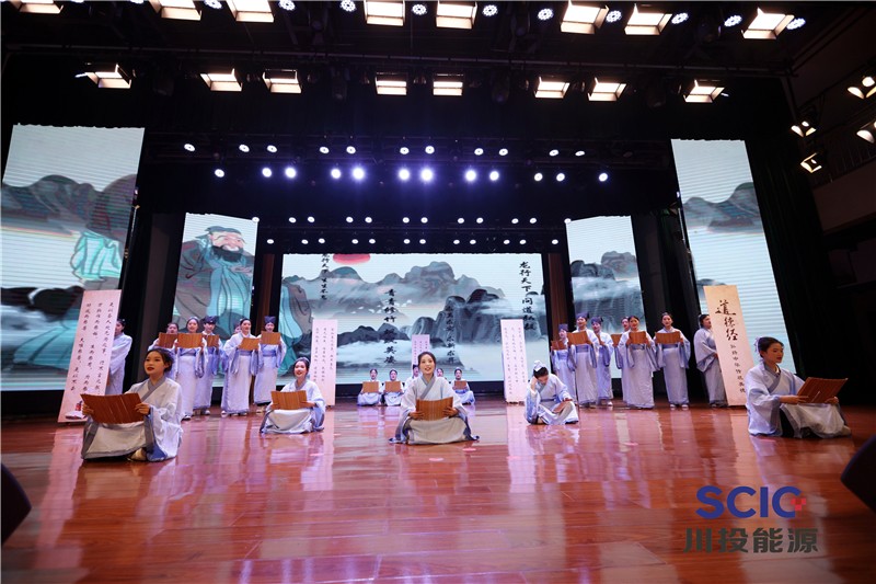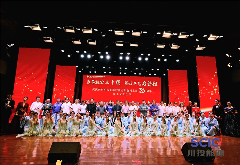 匯演現(xiàn)場,一曲激情澎湃的《鼓鳴盛世》揭開序幕,盡致展現(xiàn)國家繁榮富強,人民奮發(fā)向上的美好圖景。《向著第二個百年奮斗目標,前進!》,讓大家在快板聲中沐浴黨的二十大精神光輝,激勵廣大職工牢記總書記殷殷囑托,砥礪奮進新時代新征程。詩歌朗誦《春華秋實三十載 篤行不怠啟新程》,全景式回顧了川投能源上市30年來,篳路藍縷、奮發(fā)圖強,成長為四川省參控股裝機規(guī)模最大的能源上市公司的壯闊歷程。《經(jīng)典古文誦讀》、川劇《川劇變臉》、歌曲《不忘初心》《新時代進行曲》等節(jié)目輪番上場,舞蹈《川投水電人》《燈》《小城謠》《心彝銀江》精彩不斷,現(xiàn)場氣氛高潮迭起,贏得觀眾陣陣掌聲。最后,隨著《歌唱祖國》旋律的響起,在全場大合唱中,演出圓滿落幕。
