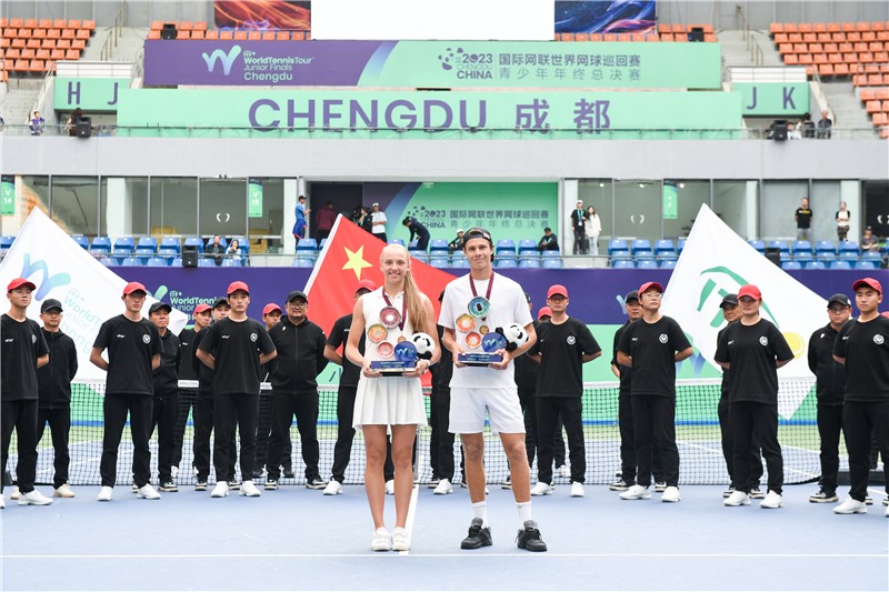 10月22日,2023年國際網(wǎng)聯(lián)世界網(wǎng)球巡回賽青少年年終總決賽頒獎儀式在川投國網(wǎng)公司隆重舉行,成都網(wǎng)球賽季順利收官。國家體育總局網(wǎng)球運動管理中心黨委書記、中國網(wǎng)球協(xié)會秘書長白喜林,國際網(wǎng)球聯(lián)合會青少年和大師賽事部負責人馬修·拜弗德,成都市體育局機關(guān)黨委書記楊慎微,成都市雙流區(qū)文化體育和旅游局副局長何建,四川川投國際網(wǎng)球中心黨委書記、執(zhí)行董事白蕾,貴人鳥集團副總裁兼品牌總經(jīng)理巨偉軍等嘉賓為男女前三名頒獎。