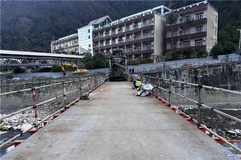 11月26日下午,田灣河公司現(xiàn)場營地“9·5”地震災(zāi)后重建取得重要進展,新建跨河通行橋順利通過載荷試驗,具備通車條件。