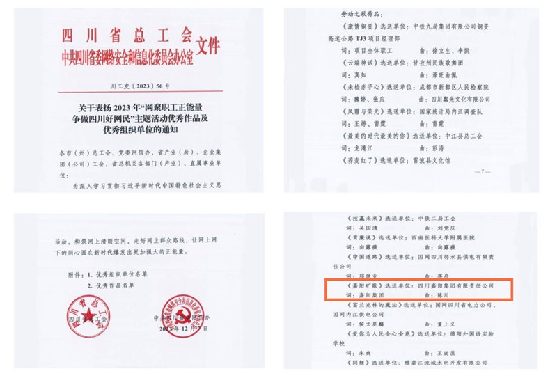 近日,四川省總工會下發(fā)《關(guān)于表揚(yáng)2023年“網(wǎng)聚職工正能量爭做四川好網(wǎng)民”主題活動(dòng)優(yōu)秀作品及優(yōu)秀組織單位的通知》,由嘉陽集團(tuán)報(bào)送的視頻《嘉陽礦歌》獲勞動(dòng)之歌作品獎(jiǎng)。