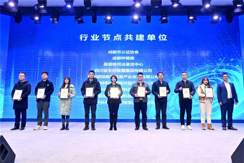 大會(huì)舉行了蜀信鏈(成都)城市節(jié)點(diǎn)揭牌儀式與蜀信鏈行業(yè)節(jié)點(diǎn)授牌儀式,成都市公證協(xié)會(huì)、成都仲裁委、基因格司法鑒定中心、川投云鏈等9家行業(yè)節(jié)點(diǎn)共建單位獲授牌。