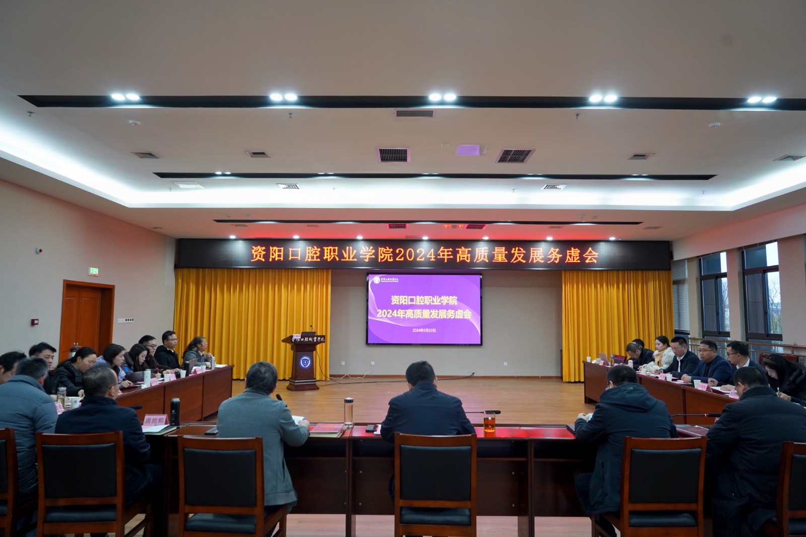 2月22日,資陽口腔學(xué)院召開2024年高質(zhì)量發(fā)展務(wù)虛會(huì),深入分析研判當(dāng)前發(fā)展形勢,謀劃部署高質(zhì)量發(fā)展思路舉措,全面凝聚共識(shí),增強(qiáng)發(fā)展動(dòng)能。學(xué)院在家領(lǐng)導(dǎo)班子成員出席,各部門負(fù)責(zé)人參會(huì),學(xué)院院長萬呼春主持會(huì)議。