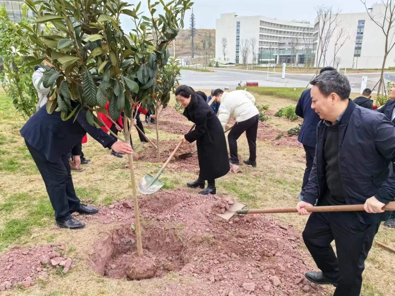 活動現(xiàn)場,公司攜佳友物業(yè)干部員工共計30余人在中國牙谷科創(chuàng)園保留山體相互配合,揮鍬鏟土、扶苗填坑、培土澆水,干勁十足,種下一棵棵希望的果樹苗。新栽植的樹苗迎風而立、生機盎然,為園區(qū)再添新綠。