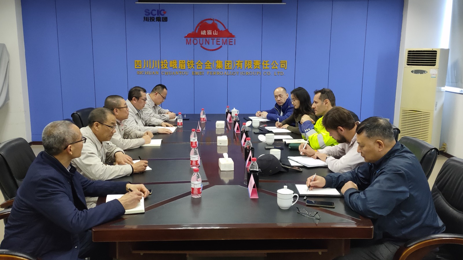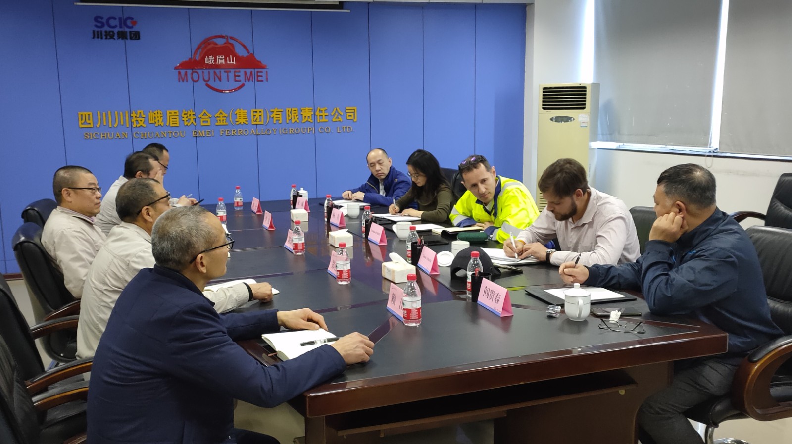 3月14日,埃赫曼集團法國總部技術(shù)經(jīng)理Cristiano DE BRITO一行5人到訪川投峨鐵公司。川投峨鐵公司黨委副書記、總經(jīng)理陳新龍與來訪客人進行了交流座談。