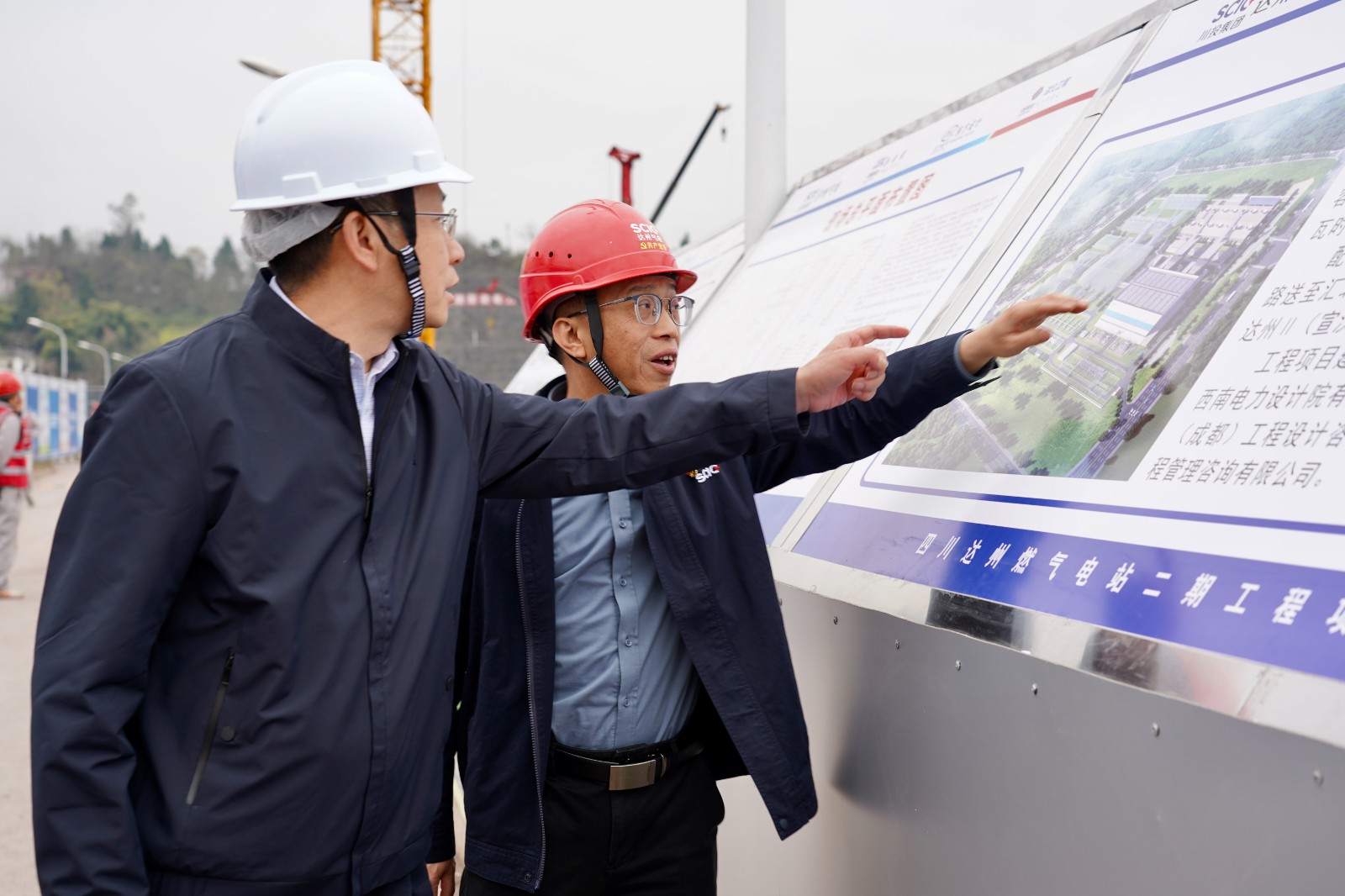 3月13日,四川省經(jīng)濟(jì)和社會發(fā)展研究院副院長楊春健及省“十五五”規(guī)劃前期研究調(diào)研組到達(dá)州氣電調(diào)研二期項目,達(dá)州市發(fā)改委副主任鄧濤,達(dá)州氣電黨總支書記、總經(jīng)理蔡宏陪同調(diào)研。