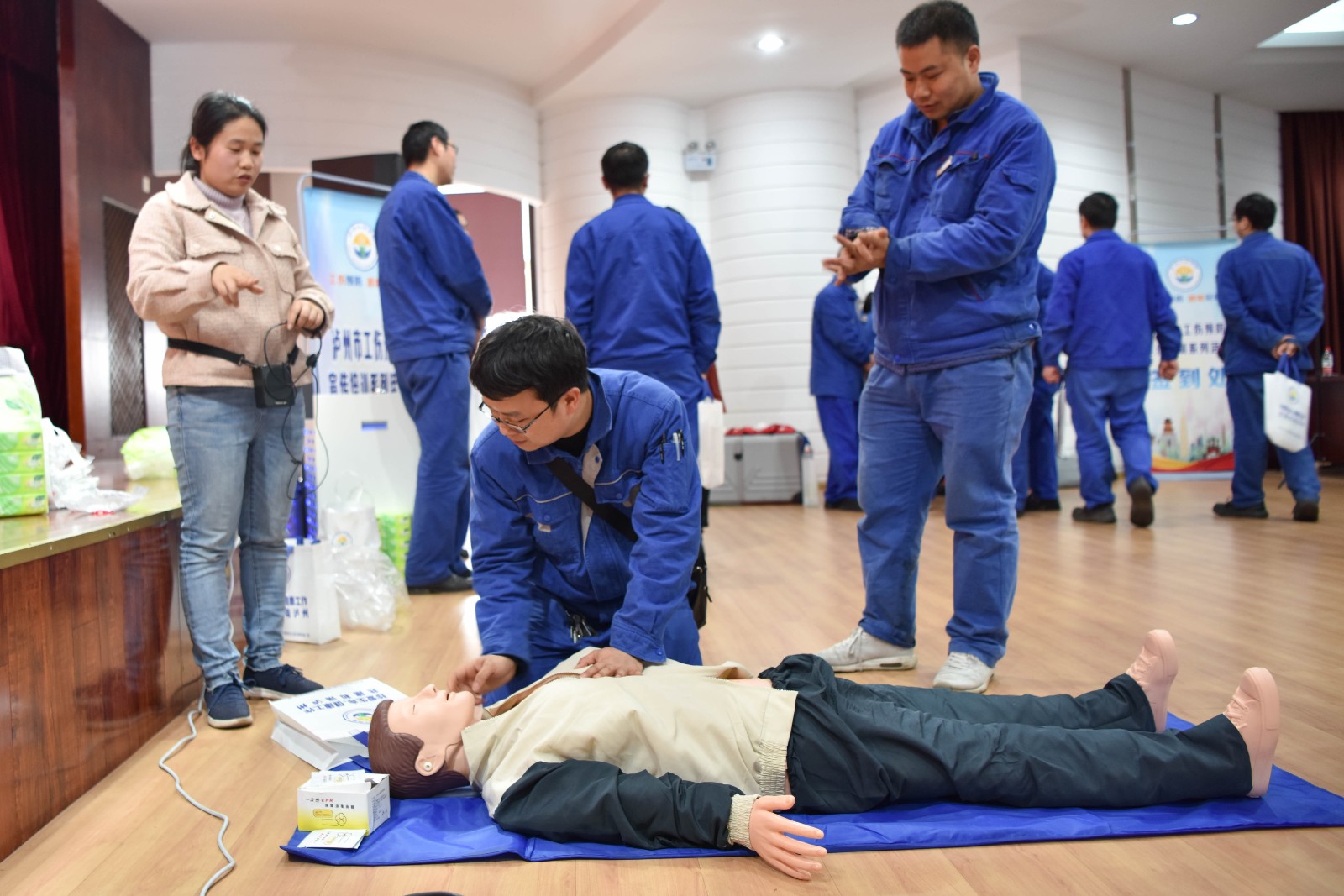 本次培訓(xùn)分為線上和線下兩部分。線上培訓(xùn)以視頻教學(xué)為主,內(nèi)容包括觸電事故及預(yù)防措施,中毒窒息事故、燃燒爆炸事故及防范措施,溺水、高溫燙傷、交通事故及中暑防范知識(shí),機(jī)械傷害、粉塵、噪聲事故、自然災(zāi)害事故預(yù)防及應(yīng)對(duì)措施等。線下培訓(xùn)以四川化工職業(yè)技術(shù)學(xué)院安培中心老師現(xiàn)場教學(xué)和模擬操作方式開展,內(nèi)容包括塵肺病的危害及預(yù)防,觸電、機(jī)械傷害、高處墜落、物體打擊、噪聲及高溫灼燙事故危害及個(gè)人防護(hù)用品的選擇及使用,心肺復(fù)蘇急救,創(chuàng)傷包扎急救,滅火器選擇、使用及火災(zāi)逃生技能等。參培人員通過VR模擬和器械實(shí)操方式學(xué)習(xí)了火災(zāi)撲救、心肺復(fù)蘇、模擬觸電以及創(chuàng)傷急救包扎等項(xiàng)目。
