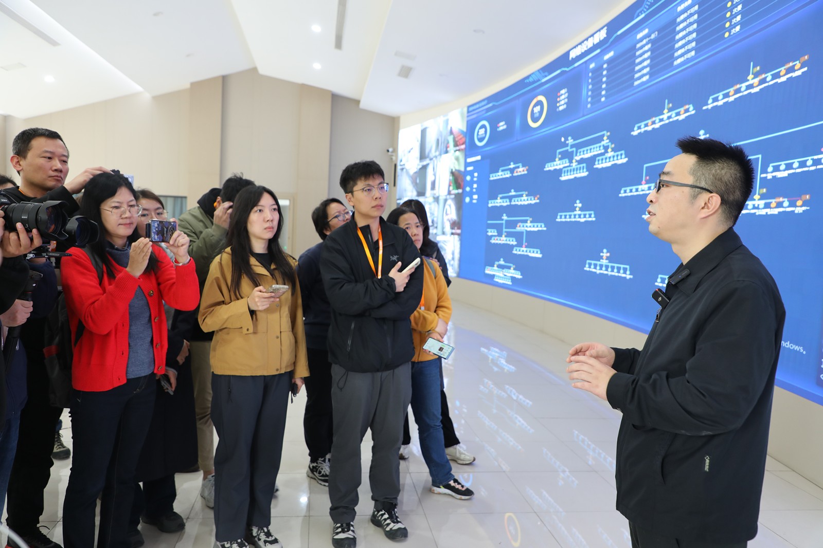 探訪團(tuán)部分記者以及中興通訊公司、重慶研究院18名來(lái)賓在集團(tuán)副總經(jīng)理、總工程師袁成金的陪同下前往了嘉陽(yáng)煤礦天錫井+215m水平中央水泵房,參觀了泵房中的5G網(wǎng)絡(luò)和通訊設(shè)施,試用了5G防爆手機(jī)的通訊功能,察看了無(wú)人值守啟動(dòng)水泵排水過(guò)程。大家在地面調(diào)度中心,透過(guò)巨屏看到了嘉陽(yáng)煤礦透明礦山信息系統(tǒng)成果展示,在采煤一隊(duì)智能化綜采地面遠(yuǎn)程操控室,聽(tīng)取了專業(yè)技術(shù)人員介紹智能化生產(chǎn)線建設(shè)與成效。一路上,大家聚焦信息技術(shù)、5G技術(shù)、智能化技術(shù)和集團(tuán)遠(yuǎn)景規(guī)劃等不斷提問(wèn),隨行的嘉陽(yáng)煤礦信息副總工程師但通和采掘副總工程師李有平耐心細(xì)致地給予講解答復(fù),氛圍友好而融洽。