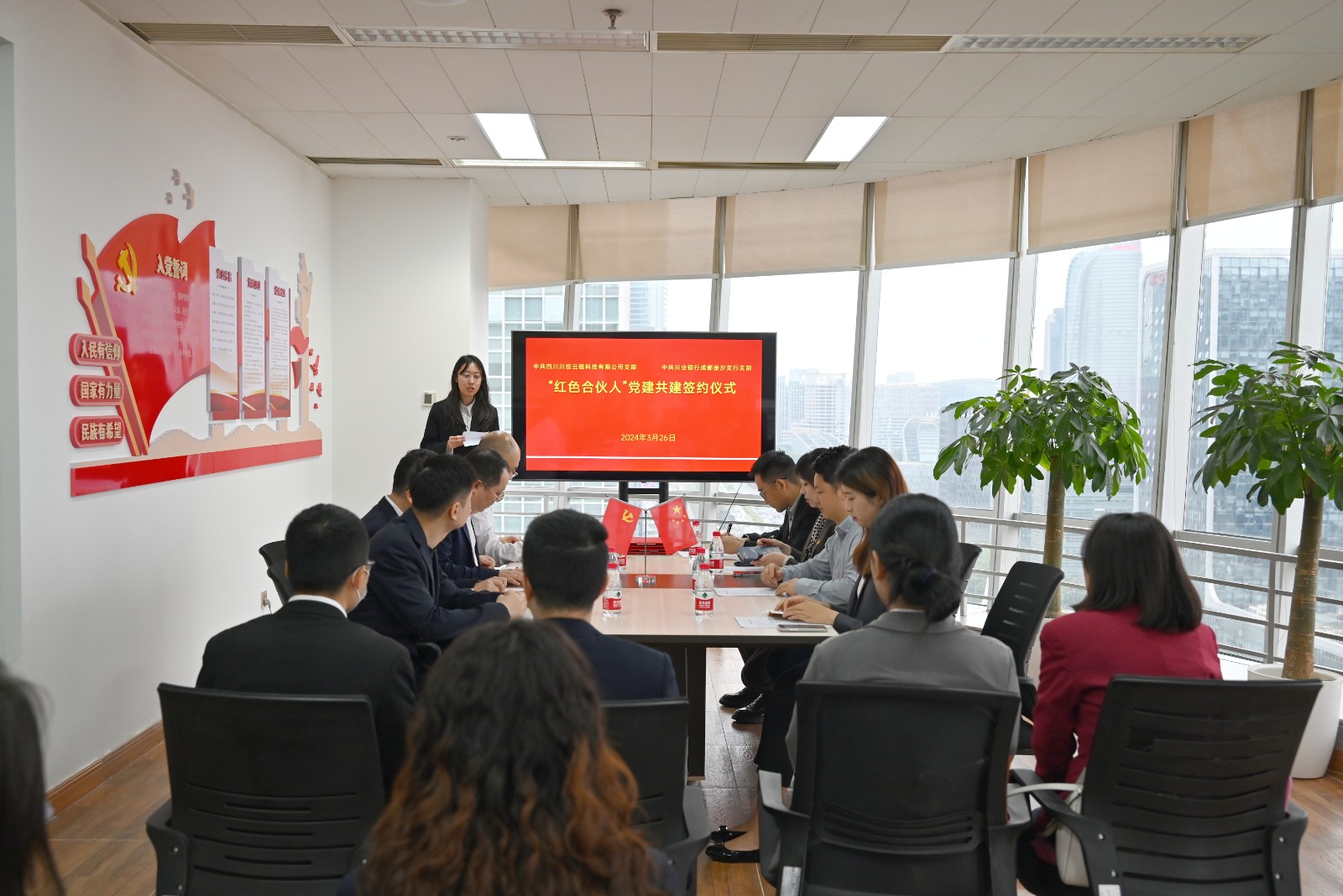 3月26日,川投信產(chǎn)所屬川投云鏈黨支部與興業(yè)銀行成都金沙支行黨支部舉行“紅色合伙人”黨建共建簽約儀式及座談交流。
