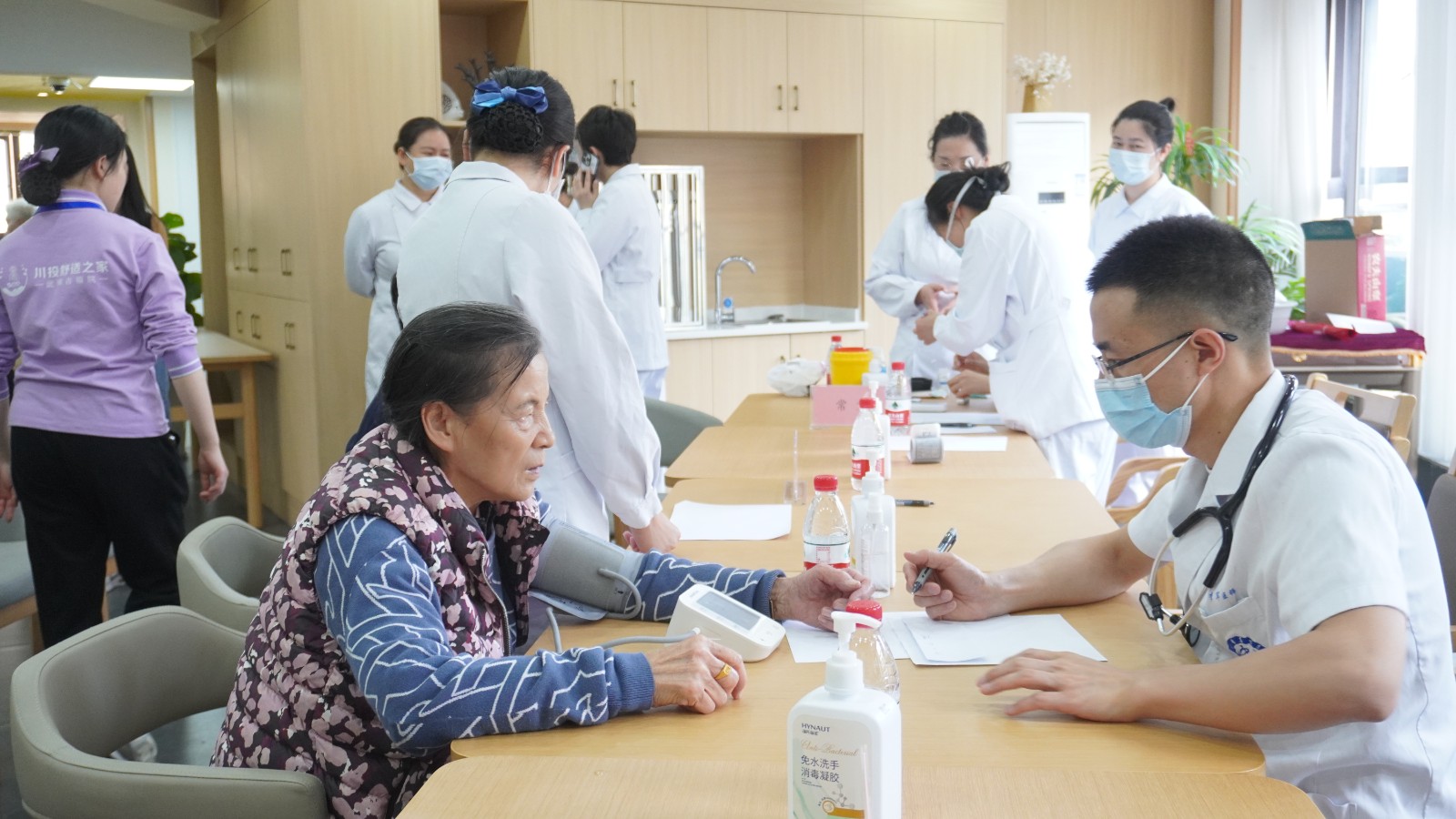 活動(dòng)中,成都上錦南府醫(yī)院/四川大學(xué)華西醫(yī)院上錦醫(yī)院麻醉手術(shù)中心的醫(yī)生護(hù)士們?yōu)槲浜顓^(qū)吉福社區(qū)和川投舒適之家·武侯吉福院長者們進(jìn)行健康義診。醫(yī)護(hù)人員通過了解各位長者的生活起居、基礎(chǔ)疾病的用藥及治療、日??祻?fù)等情況,為咨詢長者提供專業(yè)化建議,并與養(yǎng)老機(jī)構(gòu)護(hù)理人員溝通長者后續(xù)照護(hù)及康復(fù)計(jì)劃,切實(shí)將長者個(gè)性化康復(fù)需求與機(jī)構(gòu)護(hù)理、醫(yī)療保障有機(jī)結(jié)合,為機(jī)構(gòu)及社區(qū)長者安享健康幸福晚年生活保駕護(hù)航。