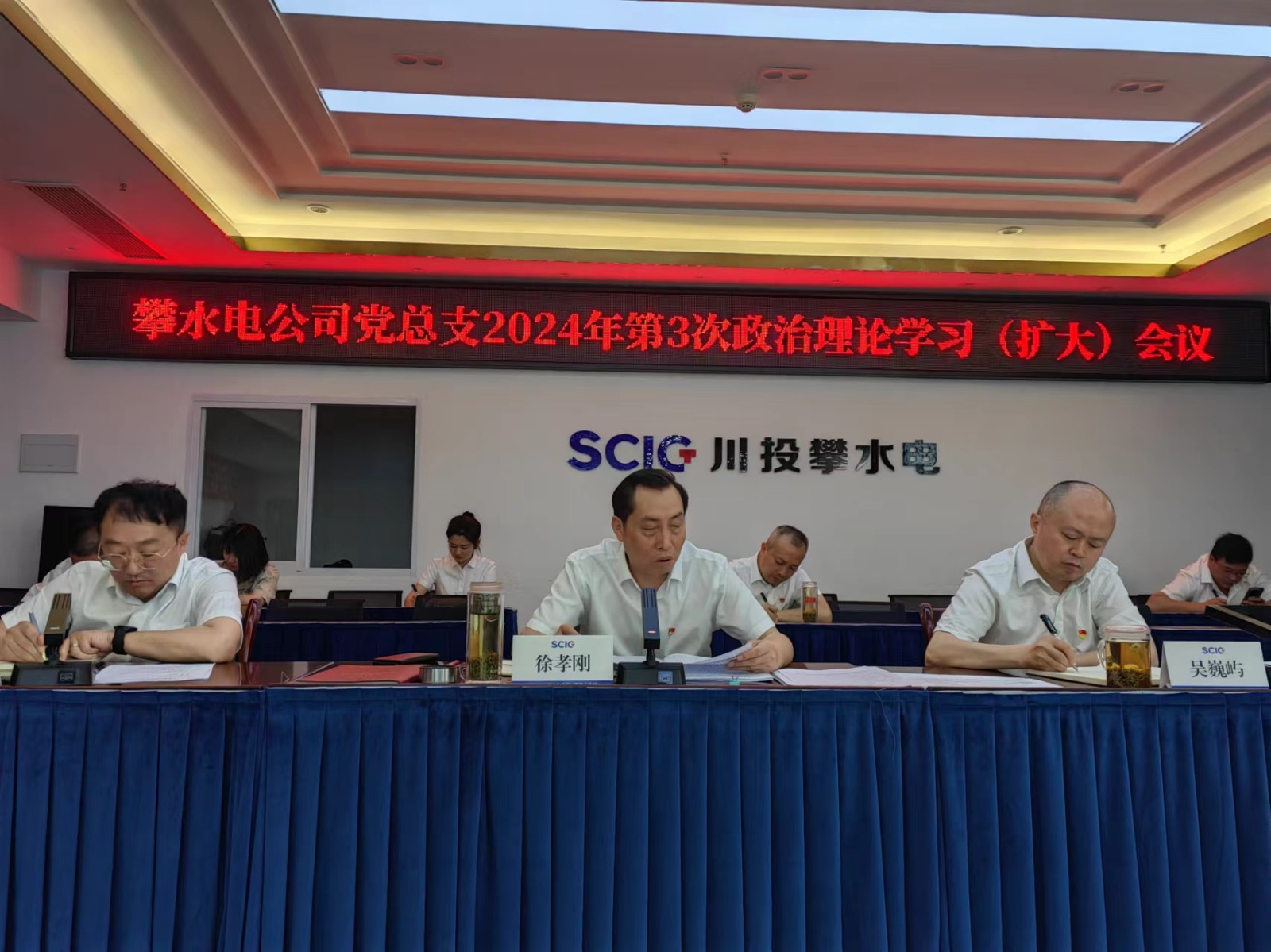 3月29日下午,攀水電公司黨總支在2620會議室組織召開了2024年第3次政治理論學習(擴大)會議。會議由川投能源副總經理、攀水電公司黨總支書記、董事長徐孝剛主持,政治理論學習會成員、全體黨員、非黨干部、入黨分子共30余人參加學習。