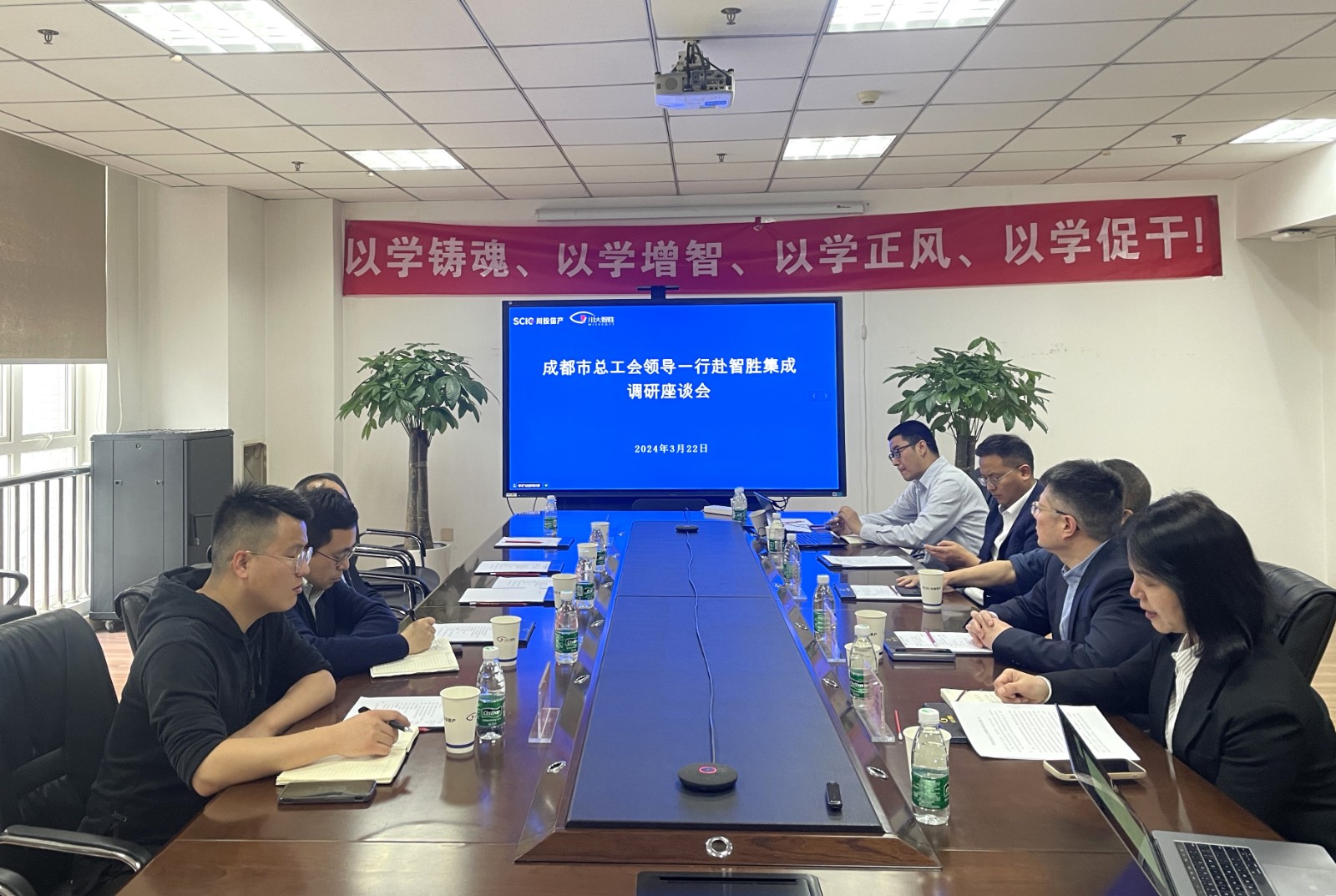 3月22日,成都市總工會(huì)率成都職工投資集團(tuán)相關(guān)人員一行赴川投信產(chǎn)所屬智勝集成調(diào)研,了解智勝集成工會(huì)在企業(yè)民主管理、職工思想引領(lǐng)、勞動(dòng)競賽等方面工作開展情況。