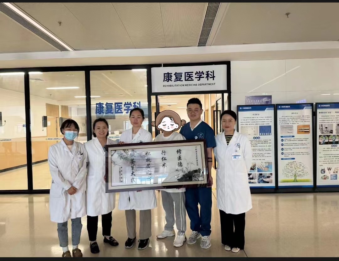 褚女士(化名)腦卒中后右側(cè)偏癱兩年零三個(gè)月,輾轉(zhuǎn)求醫(yī)未果,其兒子隨之抑郁。兩人在康復(fù)醫(yī)學(xué)科接受治療后,褚女士的肢體功能得到了很大的提升,兒子性格也日漸開朗,特意訂做了一副畫相贈。