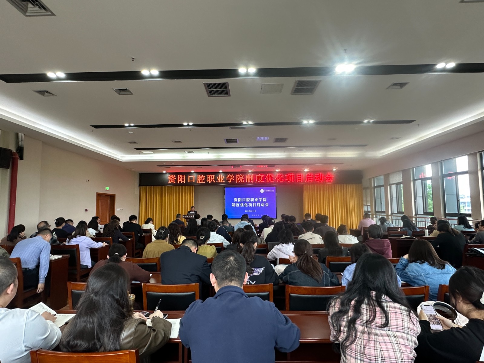 為進(jìn)一步完善各項(xiàng)規(guī)章制度,為依法治校、科學(xué)管理營(yíng)造良好的制度環(huán)境,4月11日,資陽(yáng)口腔學(xué)院召開(kāi)制度優(yōu)化項(xiàng)目啟動(dòng)會(huì)。在家院領(lǐng)導(dǎo)班子成員,北大縱橫管理咨詢集團(tuán)校外專家團(tuán)隊(duì)出席,學(xué)院制度優(yōu)化小組成員,全體教職員工參加。學(xué)院院長(zhǎng)萬(wàn)呼春主持會(huì)議。